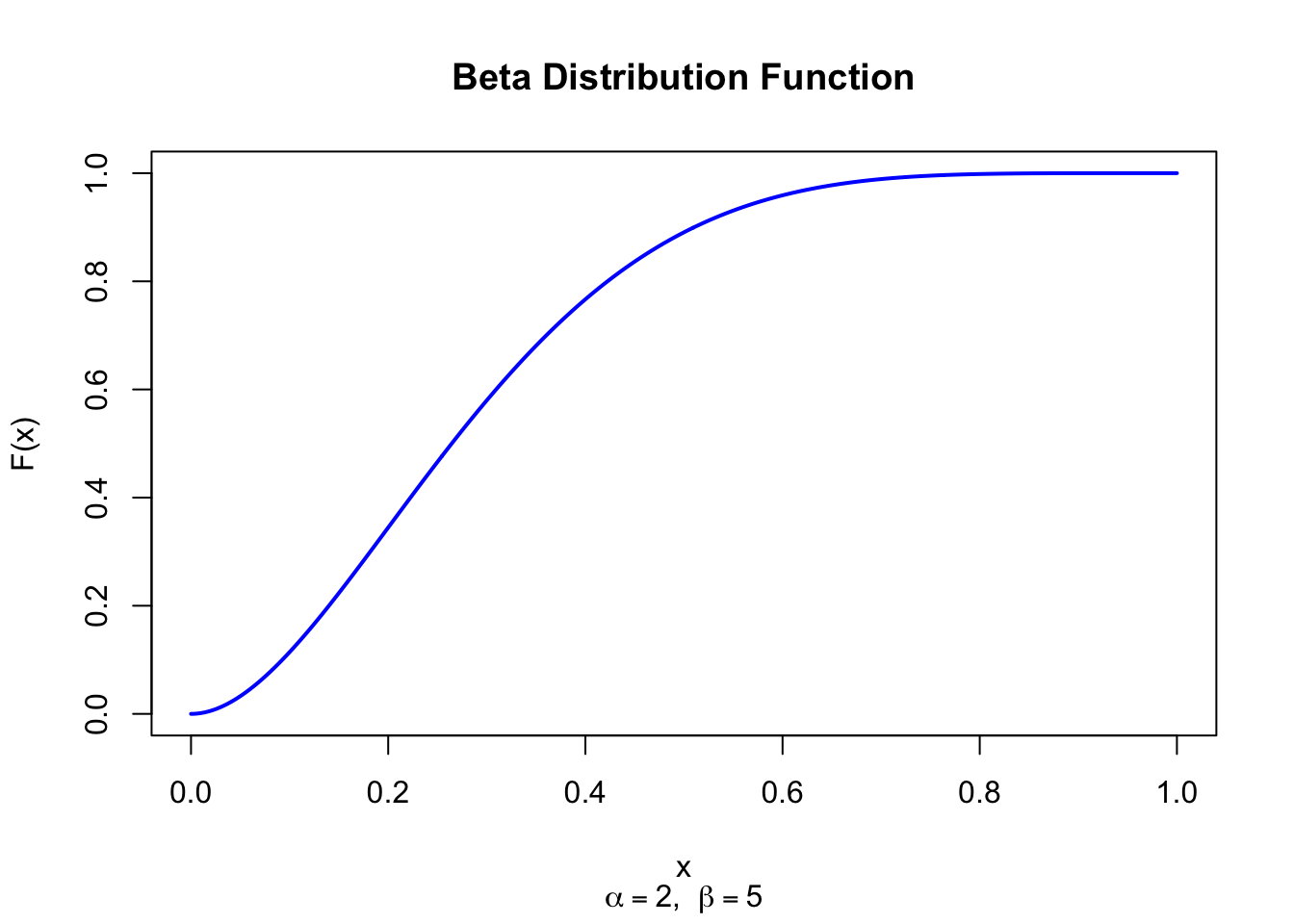 The figure below shows the Beta Distribution Function for \(\alpha = 2\) and \(\beta = 5\).