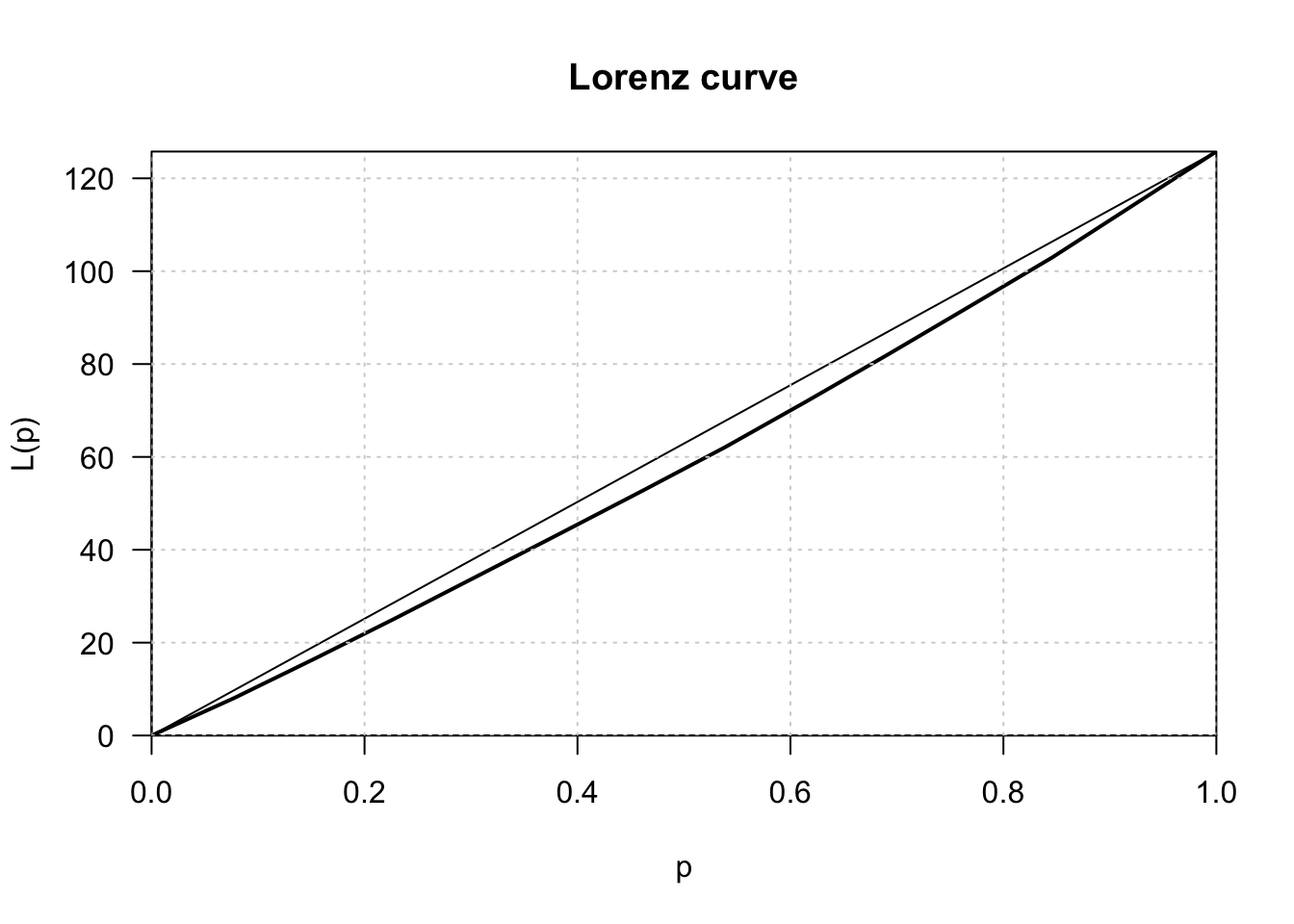 For the Gini formulas below, the observations must be ordered in nondecreasing order, i.e. \(x_{(1)} \leq x_{(2)} \leq \cdots \leq x_{(n)}\) (so \(x_i\) denotes the \(i^{\text{th}}\) ordered value).