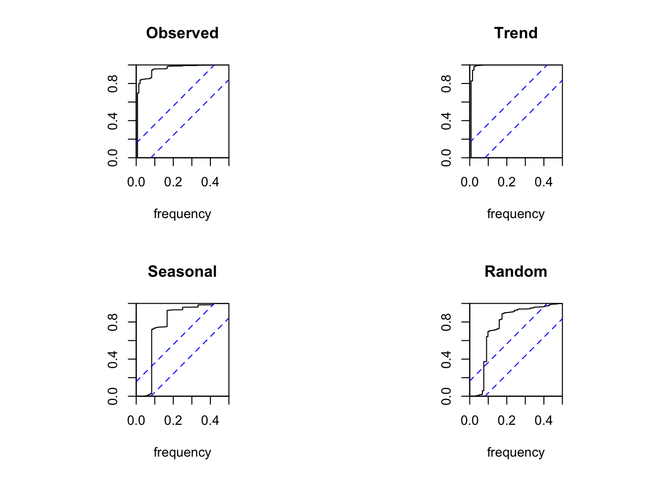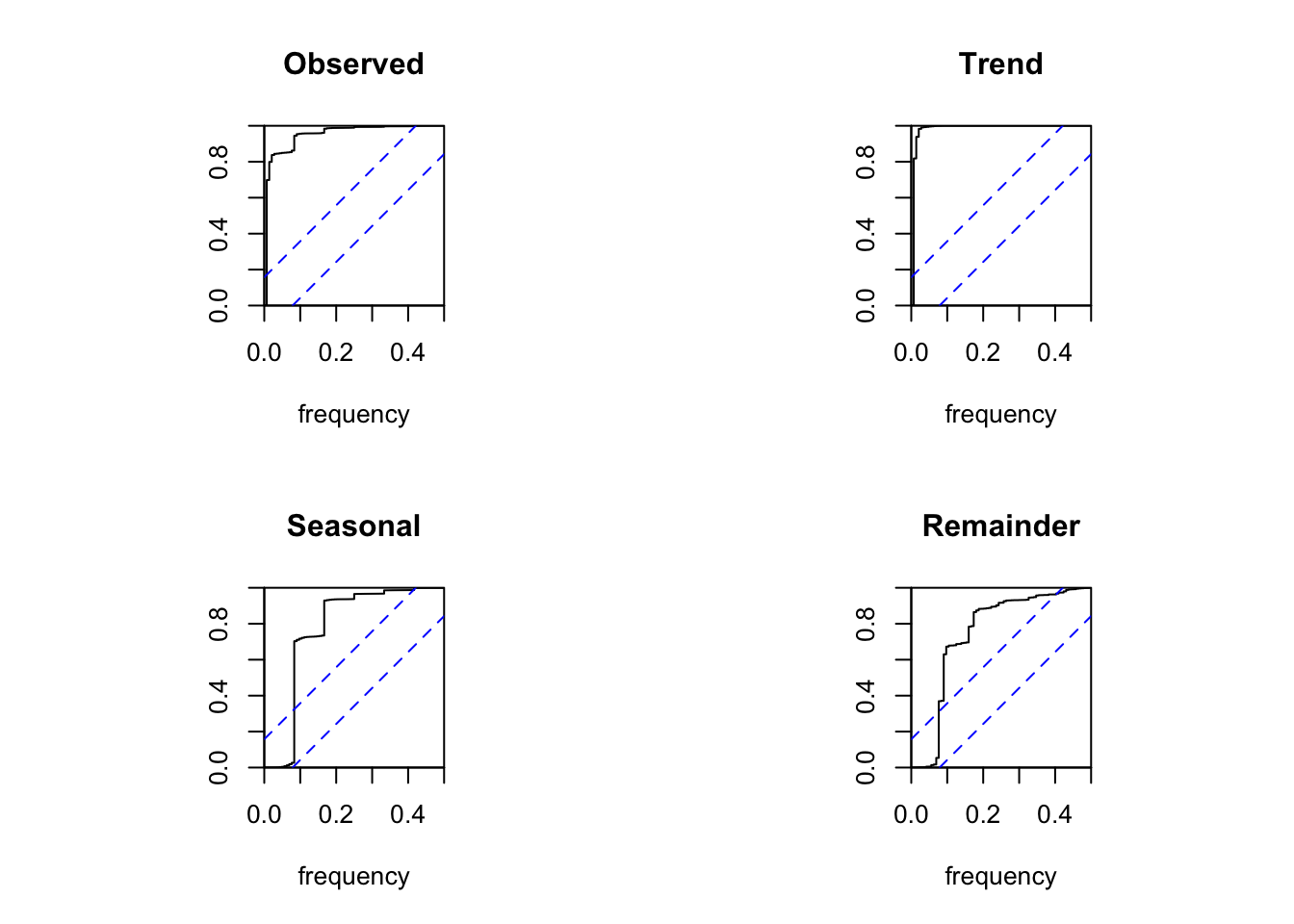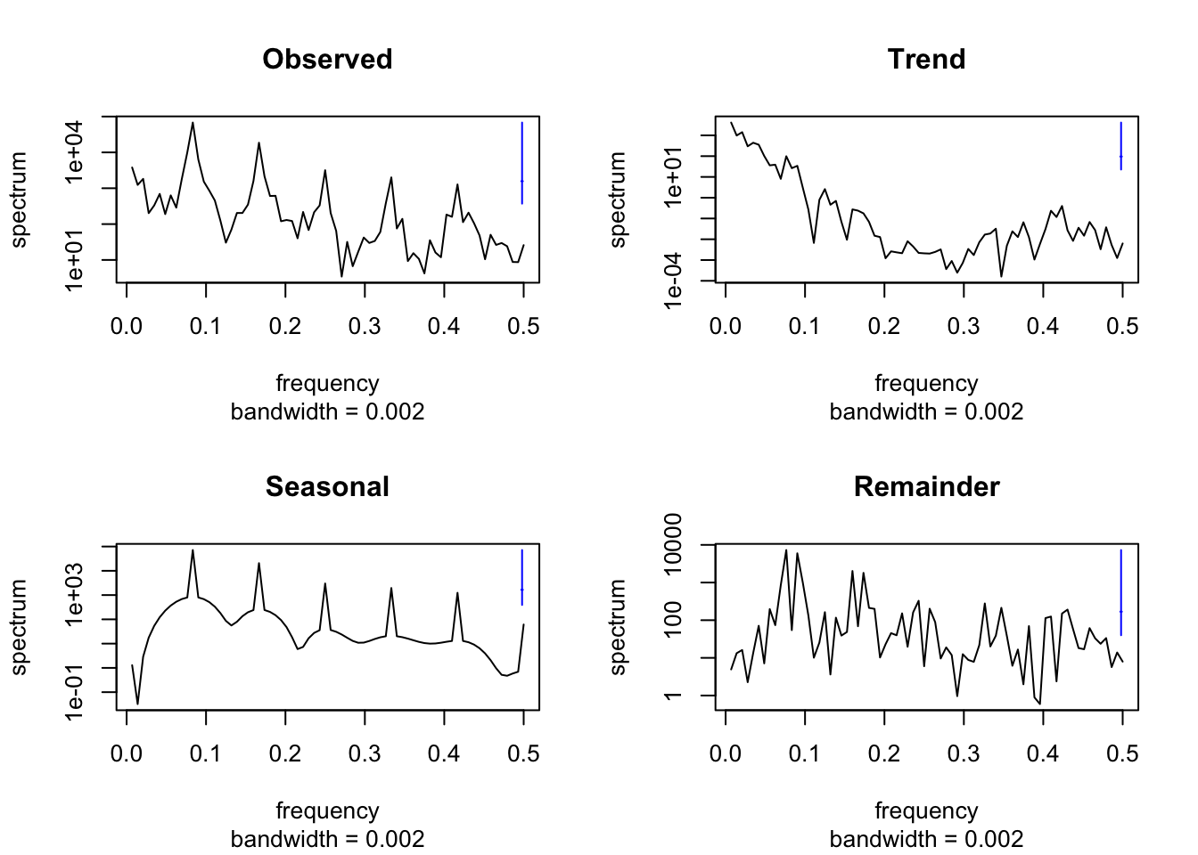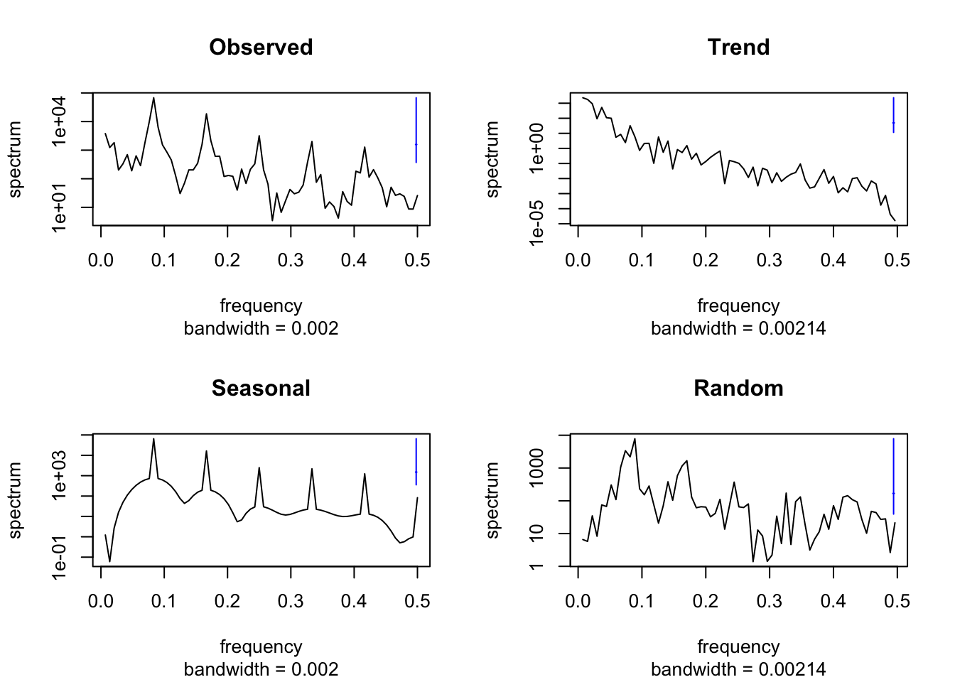 Of course, we can also compute the periodogram or cumulative periodogram to examine the components of the decomposition. The bottom line, however, is always the same and leads to identical conclusions.