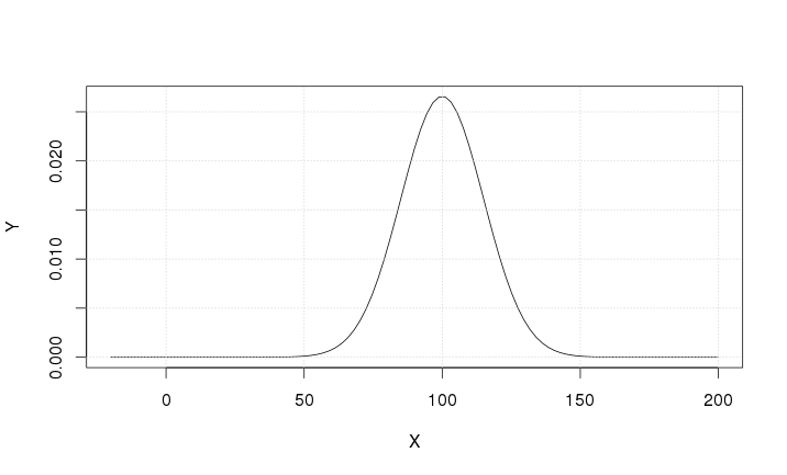 \[ Y=\frac 1{15\sqrt{\text{2$\pi $}}}e^{-\frac 1 2\left(\frac{X-100}{15}\right)^2} \]