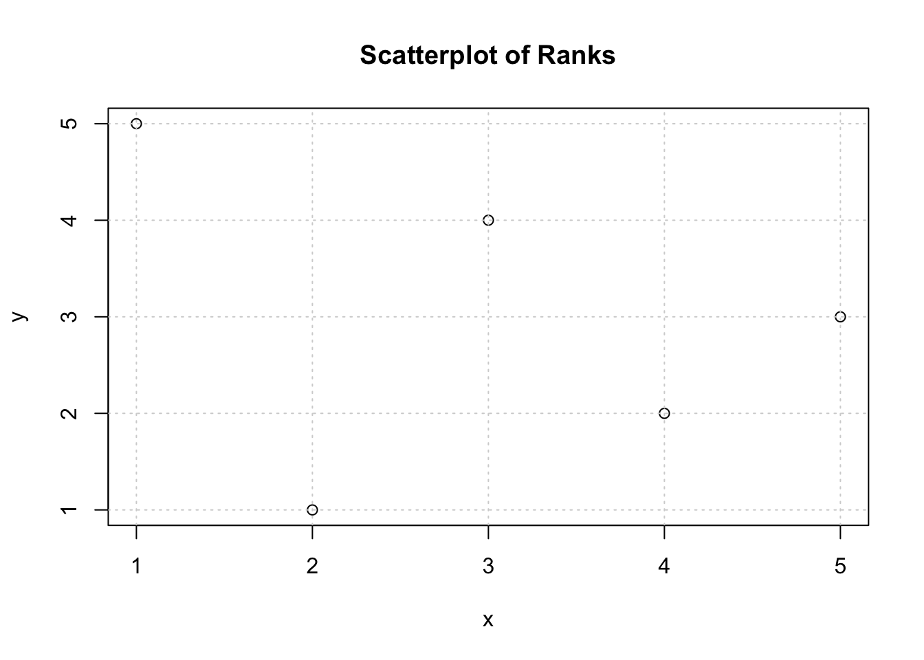 plot(rank(x),rank(y),main='Scatterplot of Ranks',xlab=xlab,ylab=ylab)grid()
