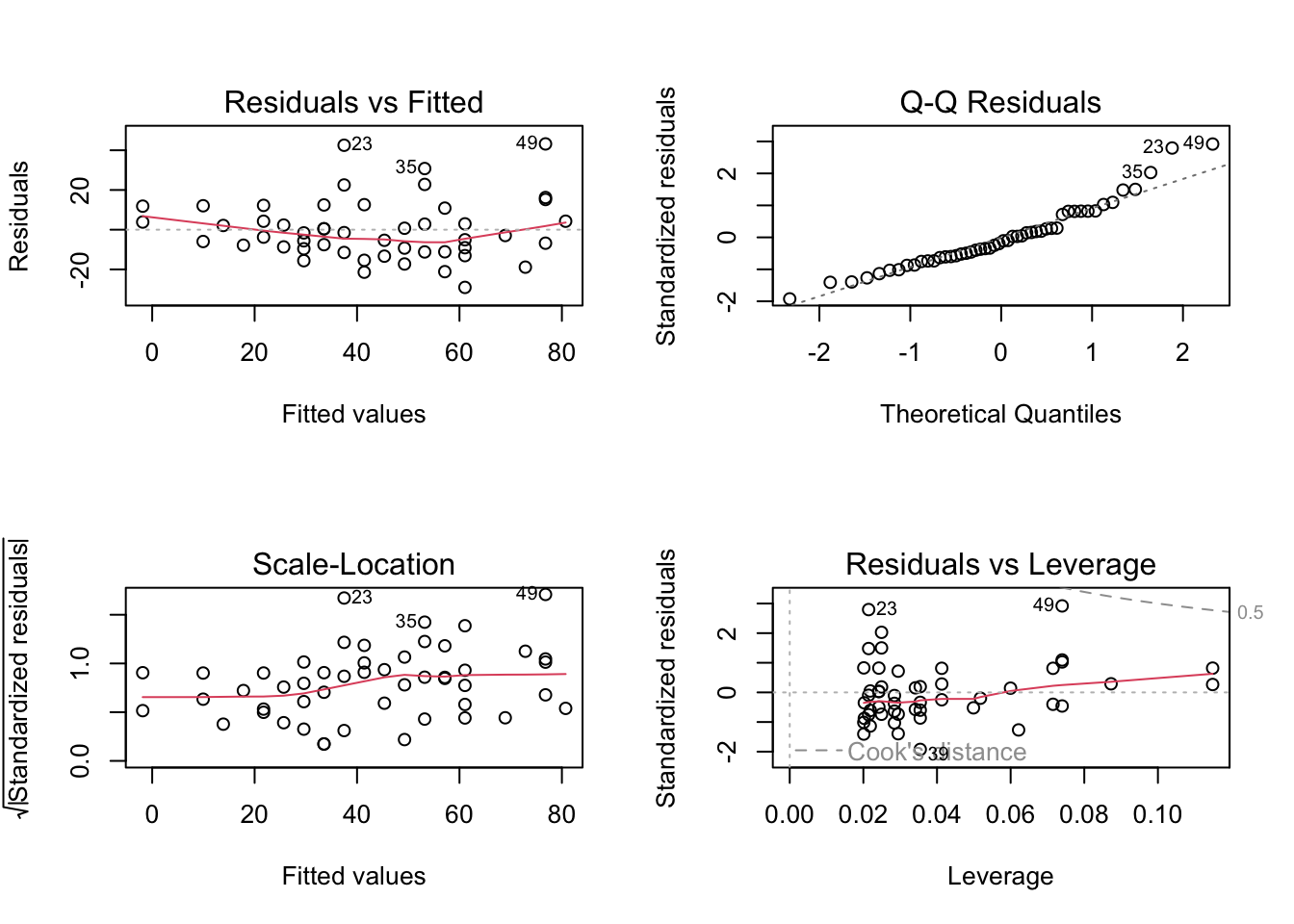 The prediction errors (residuals) have a fixed Variance \(\sigma^2\) (i.e. the residuals are “homoskedastic”, not “heteroskedastic”). This implies that